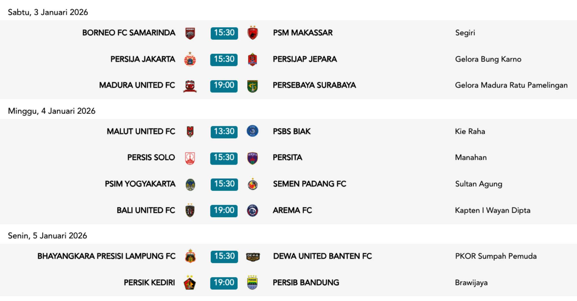 Berikut adalah jadwal pekan ke-16 Super League dan klasemen sementara: