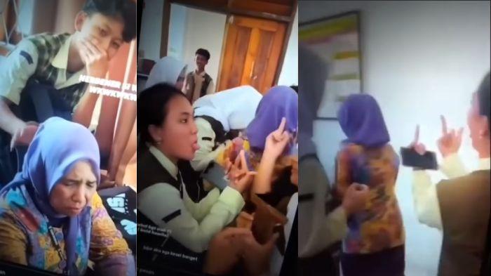 Dalam rekaman yang beredar, terlihat beberapa siswa menunjukkan gestur tidak sopan, bahkan ada yang melakukan tindakan provokatif seperti mengacungkan jari tengah dan menjulurkan lidah ke arah guru. “Setelah kegiatan itu selesai, kemudian terjadi aksi yang tidak terpuji dari anak-anak tersebut,” ujar Purwanto.
